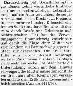 Quelle: "Urteil: Besuch nicht nötig, anrufen reicht", Schaumburger Nachrichten v. 24.08.98.