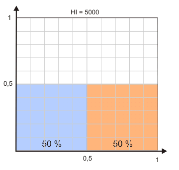 $$ \text{HI} = \sum_{i=1}^n a_i^2 \tag{5} $$Man überlegt leicht, dass der Herfindfahl-Index für ein Monopol den Wert 1 annimmt. Etwas komplizierter ist die Überlegung, welchen kleinsten Wert HI annehmen kann. Da sich die Beziehung