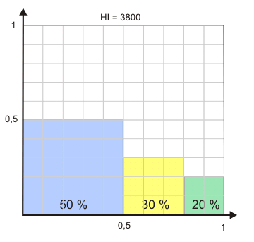 Der Herfindahl-Index besitzt noch einen weiteren Vorteil. Mit etwas Mut kann man sagen, dass ein höherer HI-Wert mit einer stärkeren Allokationsverzerrung einhergeht. Zumindest aber ist die Formulierung erlaubt, dass der Index eine gute theoretische Fundierung besitzt.